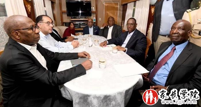 领头的是南非总统拉马福萨,成员还有塞内加尔总统萨勒,赞比亚总统希奇莱马,非盟轮值主席国科摩罗总统阿扎利,埃及总理马德布利,以及刚果(布)和乌干达的代表。